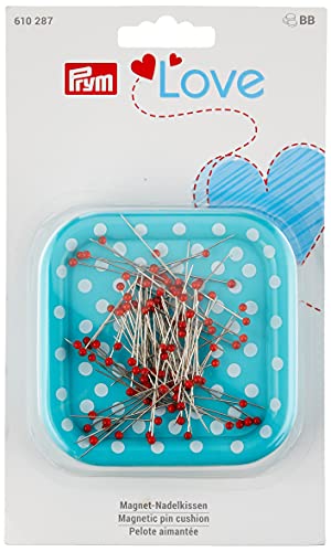 PrymLove cuscino magnetico a pois con 9 grammi di spilli con testina in vetro, rosso