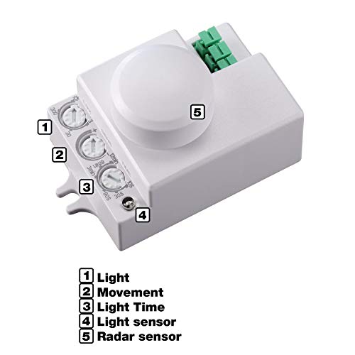 PS-TECH Rilevatore di movimento ad alta frequenza da 5,8 GHz fino a 16 m. di copertura regolabile a 2,2 m di altezza.