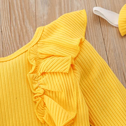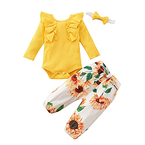 Psafagsa Neonato Abbigliamento Estivo 3 Pezzi set Tutine Neonato Body con Balze Floreali Long Giallo 12-18 Mesi