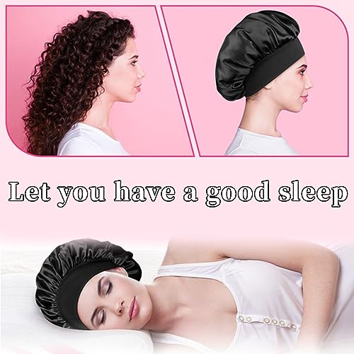 PSOWQ Cuffia seta capelli ricci, cuffia capelli ricci notte, Cuffia da Notte in Raso per Capelli, Cuffia da Notte Cuffia da Notte Copricapo Traspirante Capelli Ricci Cuffia Notte Berretto in Seta-Nero