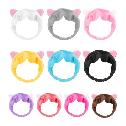 PSOWQ Fascia Capelli Trucco-Fasce per Capelli Elastiche Orecchie di Gatto, Donne Fascia Capelli per Spa, Fascia per Capelli Donne Elastiche Per il Lavaggio del Viso doccia Maschera(10 Pcs)