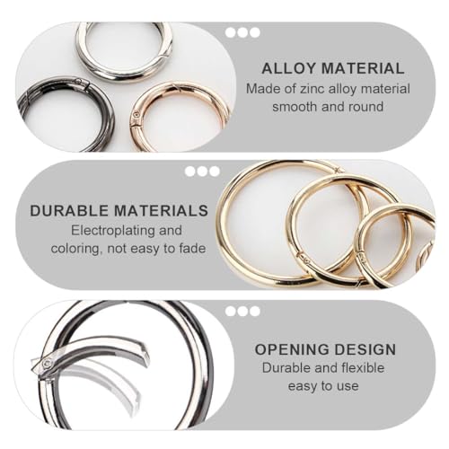 PSOWQ Moschettoni Rotondi Moschettoni Piccoli in Metallo Moschettone O-Ring Anelli Divisi a Molla in Oro Argento per Portachiavi Zaino Ciondolo 16 Pezzi