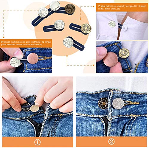 Convenienza: Estensioni per jeans in metallo non devono essere cuciti, non facili da staccare. Basta collegare una sezione dell'elastico del bottone ai pantaloni o ad altri indumenti per espandere taglia. È facile da usare e smontare e riutilizzato.