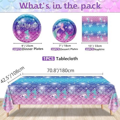 Pacchetto & Gre - La decorazione per feste a forma di sirena include 40 piatti di compleanno a sirena (20 piatti piani, 23 cm, 20 piatti da dessert da 18 cm), 20 tovaglioli (33 cm), 1 tovaglia (130 cm).