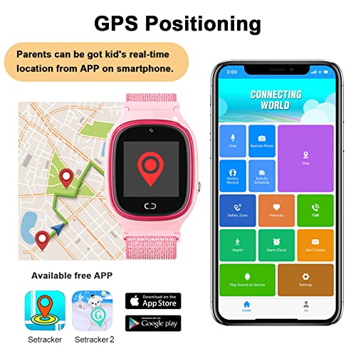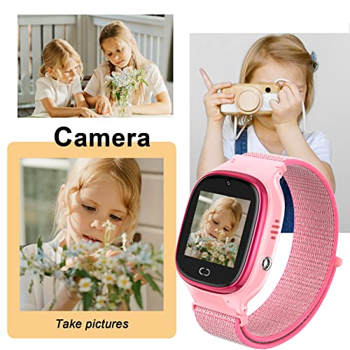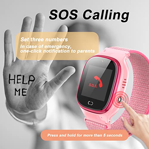 PTHTECHUS Kids Smartwatch per Bambini, GPS Localizzatore di tracciamento con Chat Vocale, Sveglia SOS per il Gioco di Matematica Studente Bambini Smart Watch, Regalo Ragazzo e Ragazza, Rosa