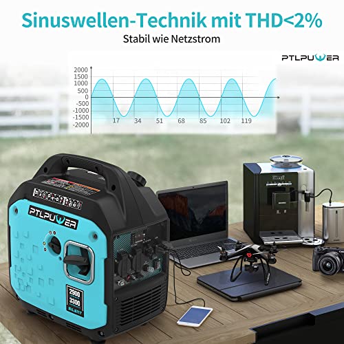 PTLPUWER Generatore di corrente da 2900 W, a benzina, portatile, silenzioso, generatore di corrente a 4 tempi, con USB e prese da 230 V, per attività all'aperto, campeggio, viaggi, garage, roulotte