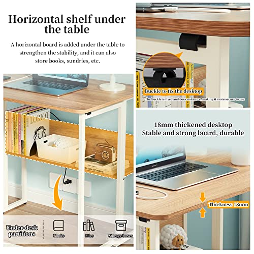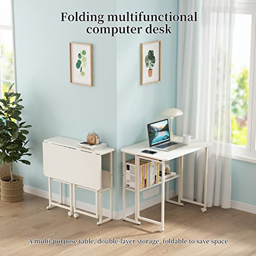 PTUWODS Piccolo tavolo pieghevole per computer con mensola, scrivania per ufficio di casa (bianco)