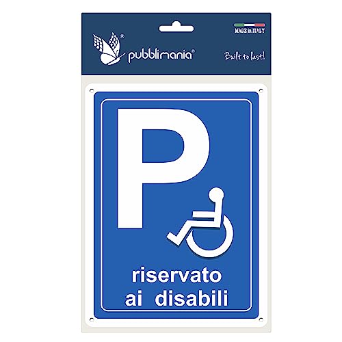 Pubblimania Cartello Parcheggio RISERVATO AI DISABILI in alluminio composito da 3 mm. Per uso esterno o interno (Parceggio disabili 30x40)