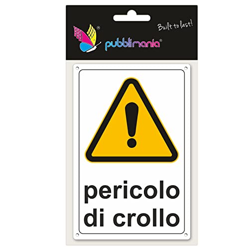 Pubblimania PERICOLO DI CROLLO. Edificio pericolante - Cartello in Alluminio per esterno metallo resistente spessore 3 mm (Cm 20x30)