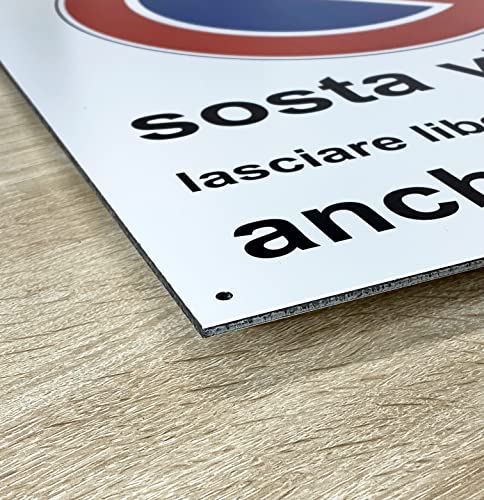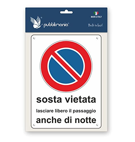 Pubblimania SOSTA VIETATA ANCHE DI NOTTE Cartello in Alluminio per esterno metallo resistente spessore 3 mm (Cm 30x40)