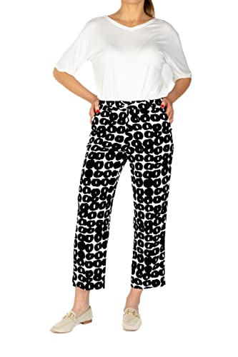 L.P. di L.Pucci Pantaloni Estivi Donna Modello Gamba Larga Tessuto Viscosa Stampa Cerchio (46, Cerchi Nero)