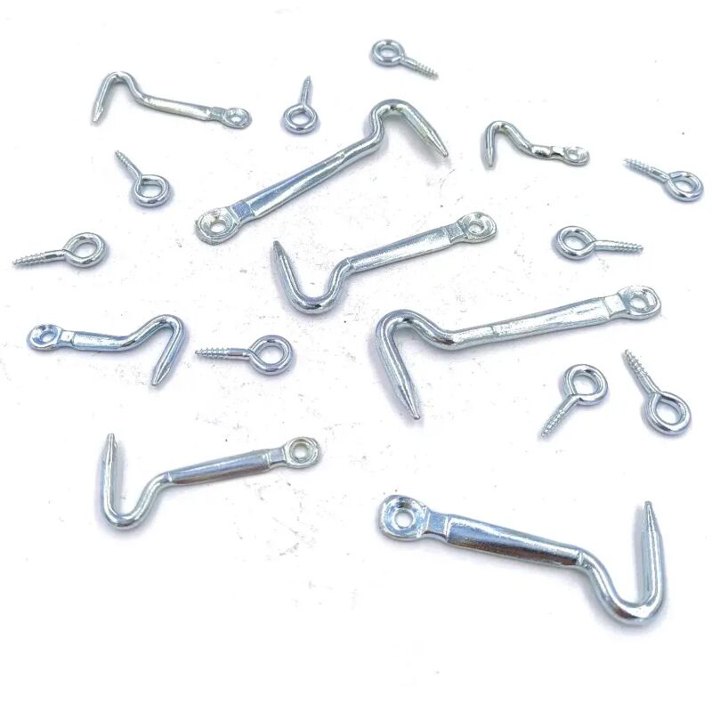 In ferro zincato, completo di occhiolo. Dimensioni espresse: H (altezza), L (lunghezza), d (diametro filo). H.24 x L.50 x d.4,00 mm - destro