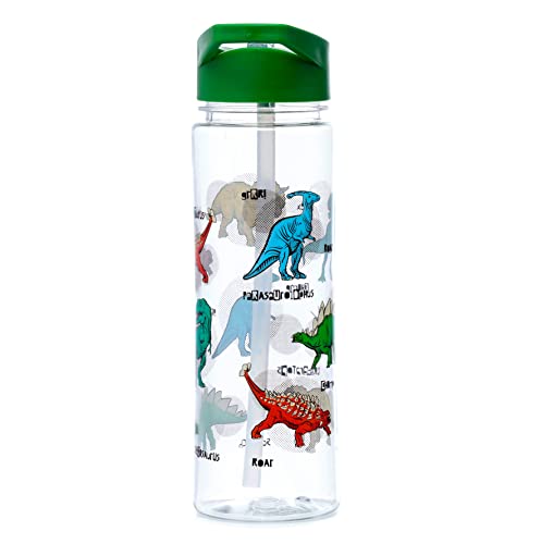 Puckator BOT182 Bottiglia d'acqua riutilizzabile in plastica infrangibile da 550 ml con cannuccia ribaltabile - Dinosauria