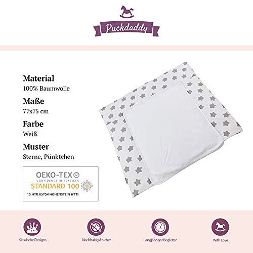 Puckdaddy fasciatoio Freya, chiusure a scatto in plastica 77x75 cm, fasciatoio 100% cotone, motivo stelle e pois in bianco, fasciatoio reversibile con rivestimento in spugna rimovibile