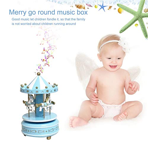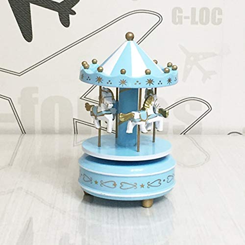 Pudincoco Carillon in Legno Giostra Carillon Musicale per Bambini Giocattoli Compleanni di Nozze Regalo Cabina Musicale Fair-Up Fairground (Blu)