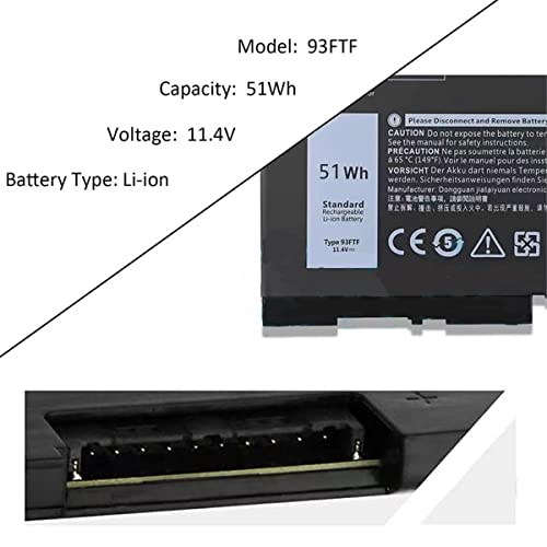 PUGASR 93FTF Laptop Battery Compatible with Dell Latitude 5580 5590 5480 5490 5280 5288 5488 5491 5495 5591 E5280 E5480 E5580 Series,Precision 15 3520 3530 D4CMT 083XPC 451-BBZT 11.4V 51Wh