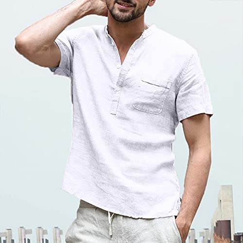 Puimentiua Maglietta Maniche Corte Uomo Estiva Colletto alla Coreana Maglietta Uomo Casual Camicia Uomo Traspirante(Bianca,XL)