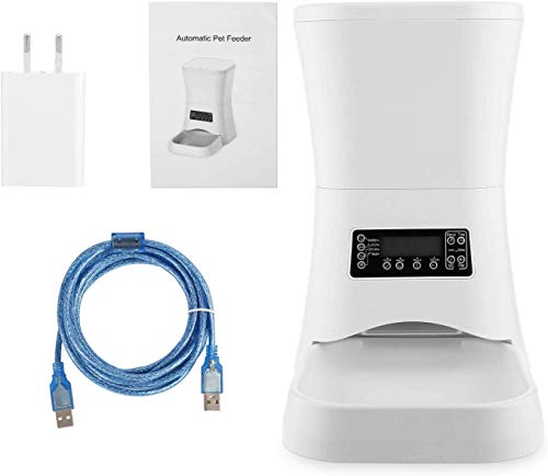 【Nutrire il tuo animale domestico regolarmente e quantitativamente】 Impostare fino a quattro diversi pasti al giorno è molto semplice con questo alimentatore per animali domestici. I pasti sono tenuti al minuto. Anche la quantità di cibo da 1 a 39 porzioni per pasto (10-390g) può essere impostata in modo abbastanza accurato.