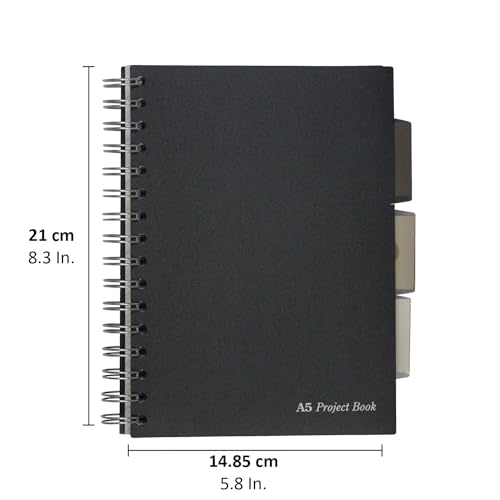 Pukka Pad - Quaderno a spirale con divisori, formato A5, colore: nero