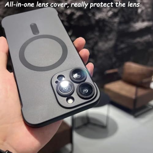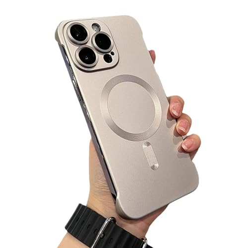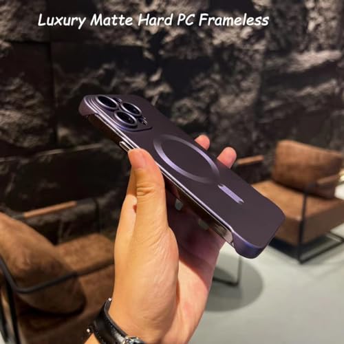 Pukmqu Metallic Paint Frameless Magnetic Phone Case, Matte PC Ultra Thin for iPhone Case, Borderless Matte Phone Case, Ultra Thin Mobile Phone Protective Case (14 Pro,Gold)