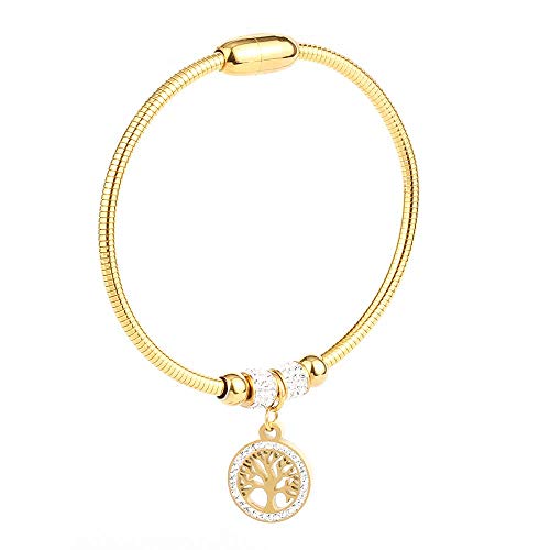 N/U PULABOBangle Bracciale, catena magnetica in acciaio al titanio con ciondolo a forma di albero della vita, braccialetto di cristallo per donne e ragazze, elegante e popolare