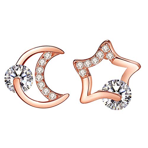 Orecchini a forma di luna e stella, in argento e oro rosa, ideali per donne e ragazze, economici e durevoli