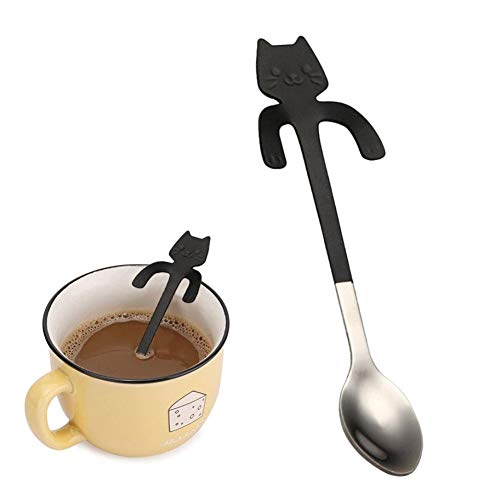 PULABOStainless Steel Coffee Spoon Mini Cat Coffee Tea Dessert Spoon Hanging Cup Spoon Kitchen Gadget Nero di qualità superiore e creativo