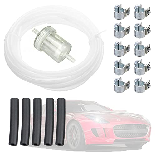 ✔ Pacchetto: kit di linea del carburante incluso 1 tubo del carburante (4 m bianco), 1 filtro, 5 tubi del carburante (nero) e 10 clip
