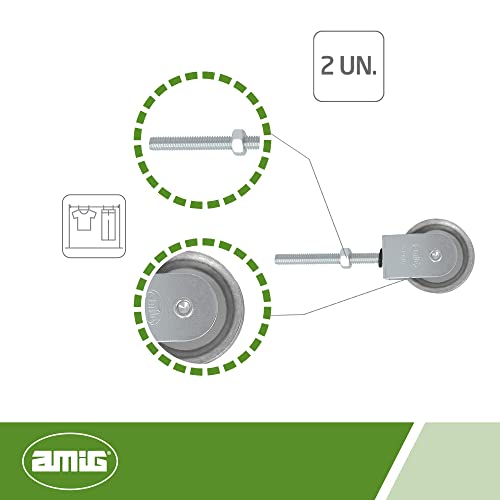 Amig - Puleggia in acciaio con rullo metallico per stendibiancheria, ø 39 mm, con vite di fissaggio, realizzata in acciaio (17209)