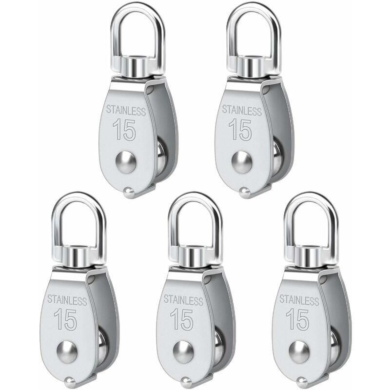 Puleggia singola comoda - La puleggia a cavo singolo è uno strumento pratico, è resistente e ha buone prestazioni, il rullo è liscio, il cavo può passare attraverso il rullo molto facilmente, è facile maneggiare la corda.< /p> 【Materiale superiore】 La puleggia di sollevamento singola è realizzata in acciaio inossidabile 304 di alta qualità, ha la buona fattura e consistenza, tutte le superfici e i bordi sono lisci, è resistente alla corrosione e alle macchie.usura, forte e durevole, ha una lunga durata. 【Design perfetto】 Il design che ruota liberamente a 360 gradi della puleggia del gancio girevole è molto utile, può prevenire perfettamente l'annodamento della fune, può rendere il l'uso diventa più facile. 【Usi ampi】 La puleggia fissa singola è molto adatta sia all'interno che all'esterno, puoi usarla facilmente.Utilizza per corde, tende, attrezzature per il fitness, stendibiancheria, corde per cani, tende ed e contro Può essere utilizzato anche per l'installazione della casa, del