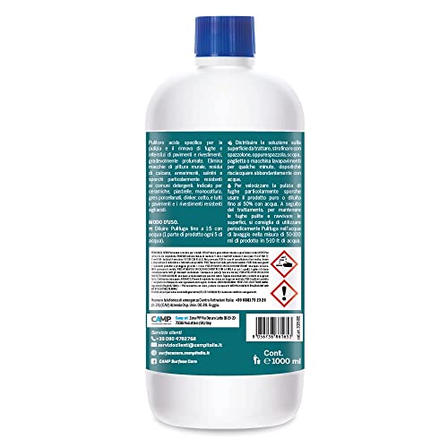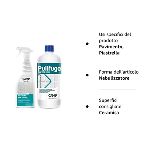 Camp PULIFUGA, Pulitore concentrato per fughe ideale per pavimenti e rivestimenti, Elimina annerimenti, macchie e muffe, 1 L + Detergente fughe
