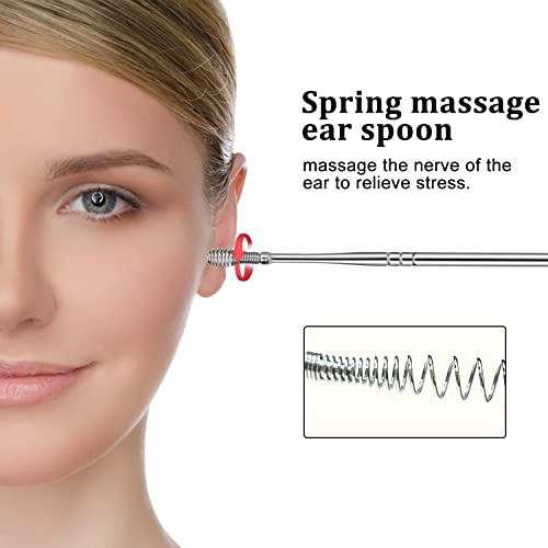 Strumenti professionali per la rimozione del cerume: diverse palette per le orecchie possono essere utilizzate insieme per rimuovere perfettamente il cerume secco o oleoso, in particolare: il raccoglitore per le orecchie a molla, la curette per le orecchie a vite e il dispositivo di rimozione del cerume a spirale possono rimuovere le aderenze nel condotto uditivo a 360 ° il cerume all'interno parete massaggia contemporaneamente il condotto uditivo.