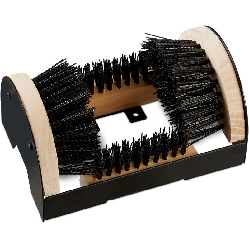 il tutto senza che voi vi pieghiate. Il pulisci scarpe è perfetto per essere montato al pavimento esterno (il materiale per il montaggio è incluso) così da poter pulire le vostre scarpe prima di entrare a casa. Pulisci scarpe con 4 spazzole in dettaglio - Dimensioni totali H x L x P: 11,5 x 23 x 15 cm ca. - Materiali: legno, metallo, plastica - Peso: 1,1 kg ca. - Colore: nero, legno naturale - In set da 4 Pulisci scarpe & stivaletti da esterno - Per scarpe da trekking, stivaletti e scarpe da lavoro o giardinaggio - Le scarpe vengono pulire contemporaneamente su 3 lati - Setole robuste contro sporco e fanghiglia - Da fissare al pavimento esterno - Per pulire le scarpe senza piegarsi o