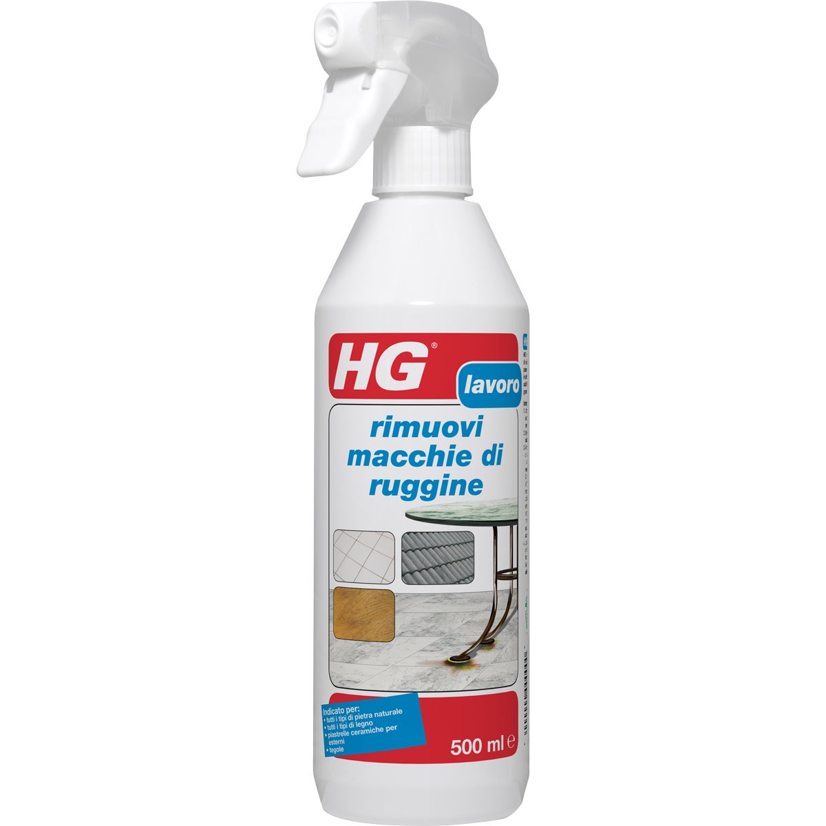 Elimina le macchie di ruggine e le tracce di ossidazione dalle piastrelle ceramiche, tegole, superfici in calcestruzzo, in pietra naturale e marmo, come anche dal metallo e dal legno. Adatto anche per la rimozione delle chiazze causate dall'ossidazione nei metalli non trattati come rame, ottone, bronzo e ferro (ghisa).. rimozione di macchie di ruggine dal marmo, pietra naturale, legno, piastrelle. Non contiene acidi.. non rovina il marmo