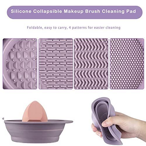 【3 Diverse Combinazioni】La Pulizia Pennelli Trucco in silicone viola e spugna detergente pennelli ripristinano i tuoi pennelli e spugne a uno stato pulito, morbido e delicato, e il cestello di asciugatura può risolvere le tue esigenze di pulizia quotidiana delle spugne per il trucco, non ti preoccupare su come asciugarli, o è rotto con una clip, e il problema della spugna per la pulizia quotidiana del trucco può essere facilmente risolto.