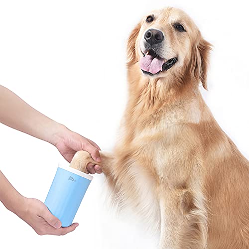 Pulitore per zampe di cane, rondella per zampe, Paw Buddy Muddy Paw Cleaner, 360 ° di rotazione per animali domestici, in silicone, per cani e gatti di piccola taglia e media grande (blu M)