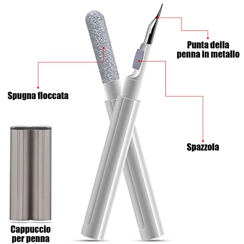 ✔✔【Differenziazione Design】La penna per la pulizia delle cuffie è composta da due penne, una con punta e pennello e una con bastoncino di pelucchi. Offre una differenziazione e una migliore esperienza d'uso. Con una lunghezza di 11cm e un peso di soli 14g, è piccolo e facile da trasportare, in qualsiasi momento per l'uso quotidiano.