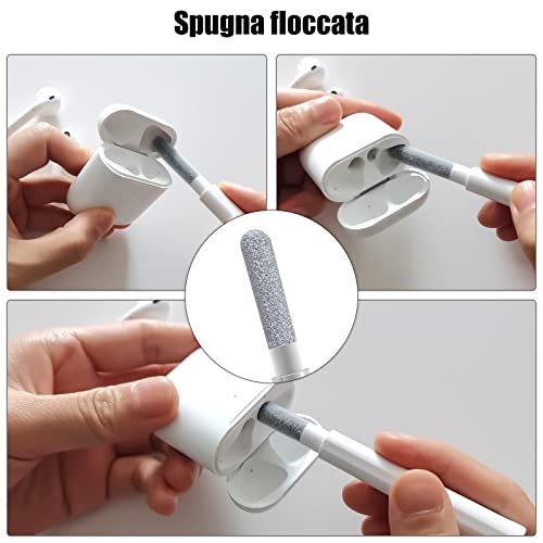3 in 1 Kit Pulizia Airpods, Electight Multifunzione Penna Pulisci Auricolari Bluetooth con una Spazzola Morbida per le Custodie Delle Cuffie, per Airpods 1/2/3/Pro/ipod, Phone, Laptop, Microfono