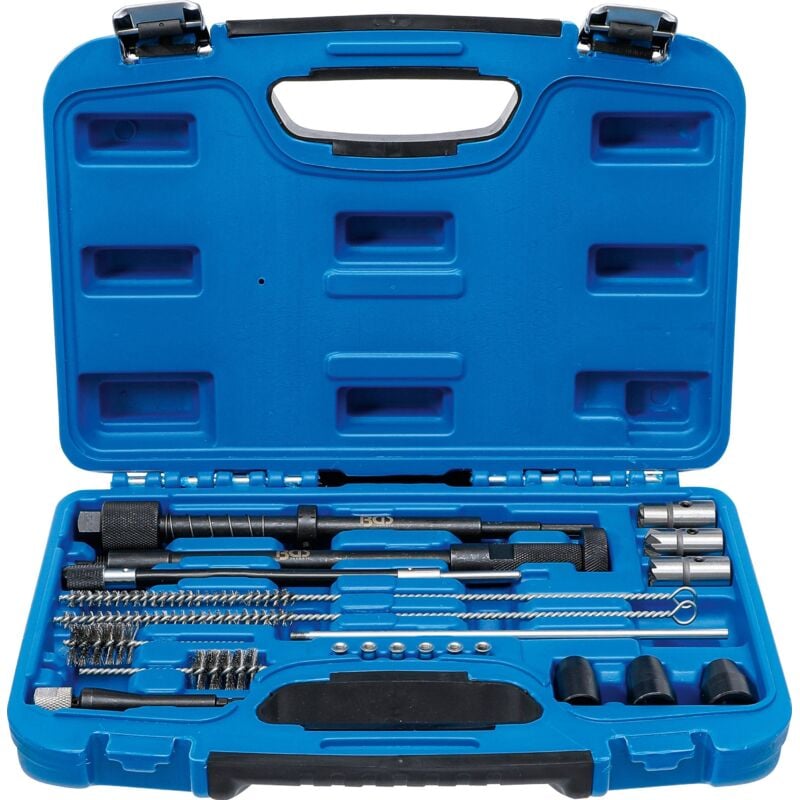 Per pulire le sedi degli iniettori e gli alberi delle candele di preriscaldamento Oggetto della fornitura: 4 spazzole detergenti Portaspazzole 3 frese per sede dell'iniettore Guida della fresa Estrattore di anelli di tenuta Prolunga del portaspazzole Adatto per Peso del tessuto 2.37 Dimensioni dell'imballaggio 1 Peso lordo 2370 g