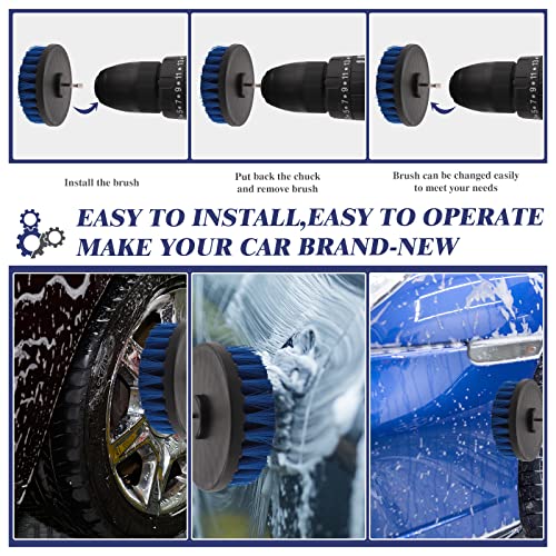 【Kit per la pulizia dell'auto da 24 pezzi】 Il kit per i dettagli dell'auto include 5 spazzole per i dettagli dell'auto, 3 spazzole metalliche, 3 tamponi per lucidatura per auto in schiuma, 1 ventosa, 1 guanto per lavaggio auto, 2 spazzole per prese d'aria, 1 Spazzola per Cerchioni, 1 spugna per lavaggio auto, 1x Asciugamano per lavaggio auto, 1 custodia resistente, 4 spazzole per trapano, 1 Pennello Pulizia Auto Interni. (Trapano non incluso)