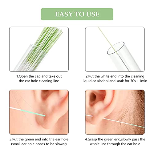 【Materiale】 La linea di pulizia del piercing all'orecchio è realizzata in filo sottile, che è più flessibile e delicato sulla pelle e viene utilizzata per trattare le orecchie forate. Non preoccuparti mai più dello sporco nelle orecchie e allevia sintomi come infiammazione, blocco e orecchie puzzolenti.