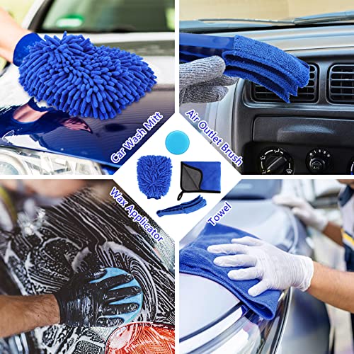 Kit di pulizia per auto da 15 pezzi con borsa di stoccaggio Kit di pulizia per auto che include panno in microfibra, guanto di lavaggio, spazzole per dettagli, spolverino a doppia testa, spugna