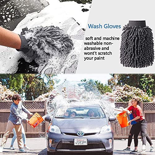 Set di Pulizia Auto, 6 Pezzi Kit Pulizia auto interni ed Esterna, Kit lavaggio moto, Auto Guanto per Lavaggio, Scratch Gratuito, Auto Panni di Pulizia, Panni Microfibra(Grigio)
