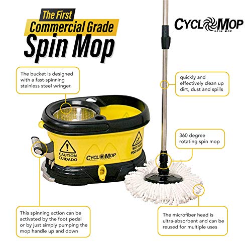 Pulizia senza sforzo: il set di mocio e secchio Cyclomop è progettato per rendere le tue attività di pulizia del pavimento facili e veloci, con un set di mocio rotante e secchi che rimuove l'acqua in eccesso per un'asciugatura più rapida e una finitura senza aloni