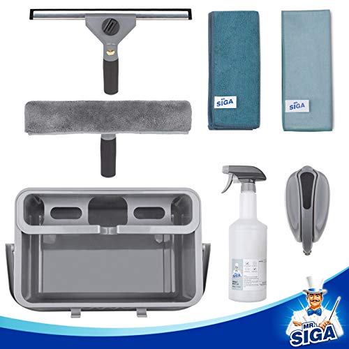 MR.SIGA set per la pulizia della casa, set di 7, 1 tergivetro, 1 lavavetri in microfibra, 1 spazzola per la pulizia, 1 flacone spray, 2 panni in microfibra, 1 contenitore