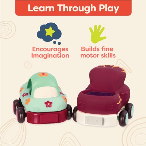 B. baby - Pull-Back Cars - 4 Soft Vehicles with Sounds - Car, Taxi, Race Car, Pick-Up Truck - Toy Cars for Toddlers, Kids - 12 Months + - Wheeee-ls!