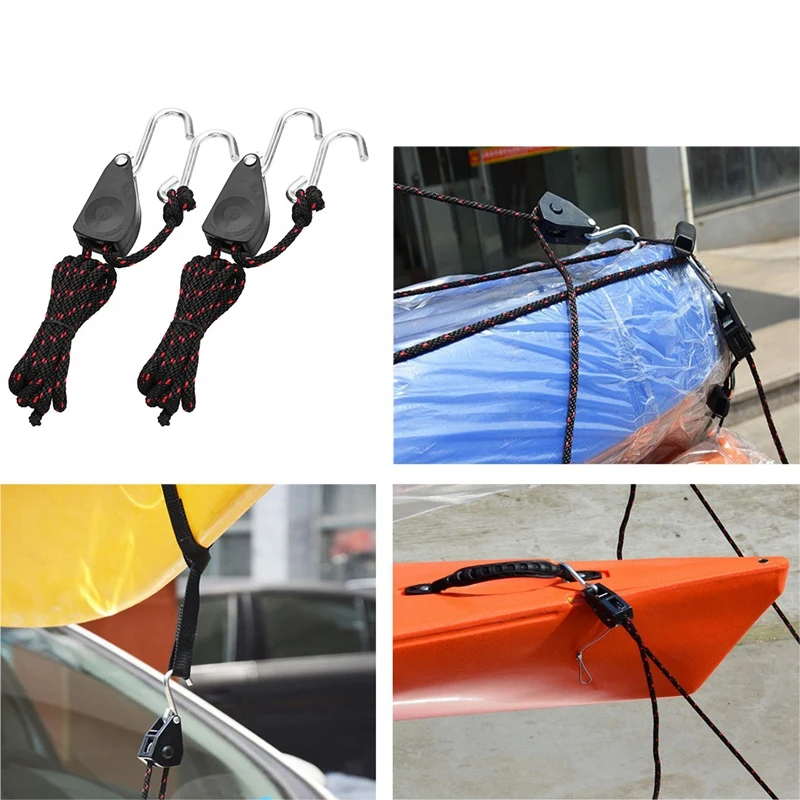 Pulley Ratchets Kayak and Canoe Boat Bow and Stern Rope Lock Tie Down Strap 1/8 Inch Duty Adjustable Rope Hanger( 2 PCS)