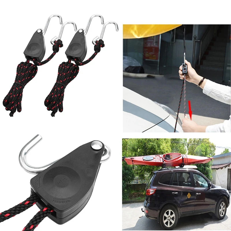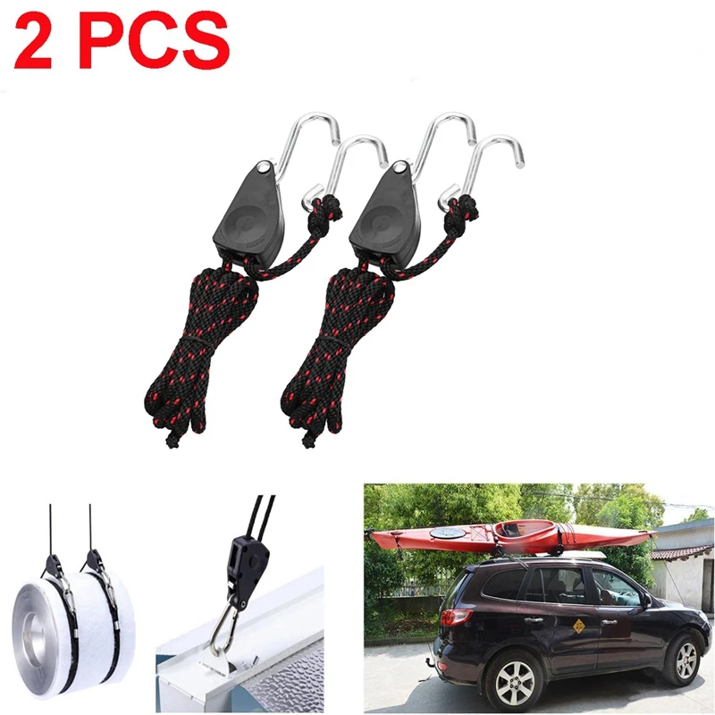 Pulley Ratchets Kayak and Canoe Boat Bow and Stern Rope Lock Tie Down Strap 1/8 Inch Duty Adjustable Rope Hanger( 2 PCS)