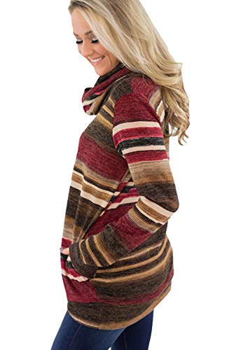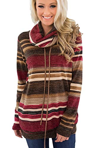 Pullover Dolcevita Donna Felpa Vintage Felpa a Righe Ragazza Moda Sweatshirt Autunno Inverno T-Shirt Particolari Boho Hippie Etnico Chic Blusa Manica Lunga Maglia Collo Alto Camice Tunica Blusa Top