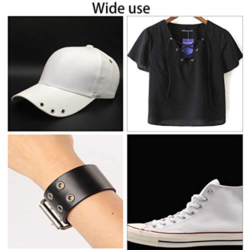 Efficiente: grommet kit occhielli sono facili da installare. Dopo la perforazione con uno strumento di perforazione, l'occhiello è fissato insieme. La superficie dello strumento di punzonatura ha un modello antiscivolo, che può evitare di scivolare durante l'uso.